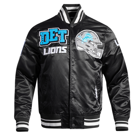 NFL DETROIT LIONS MASHUP MEN'S RIB SATIN JACKET FDL6410476-BLK